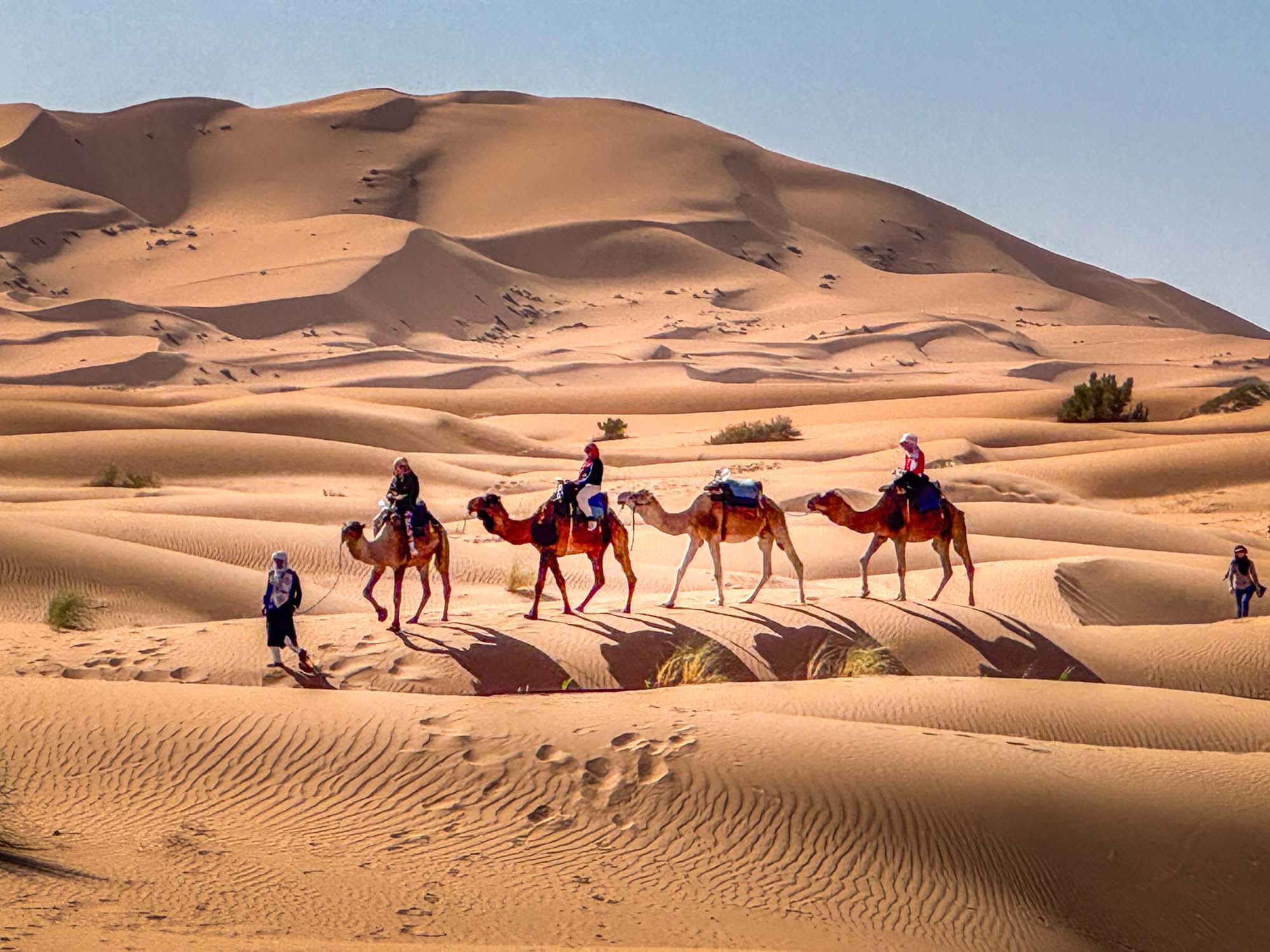 Wir schaukelten also auf Dromedaren langsam vor uns hin, Schritt für Schritt und spürten: Die Zeit tickt hier anders. Im sanften Wiegen der kleinen Karawane waren wir bereit für dieses Abenteuer und ließen den Alltag endgültig hinter uns.